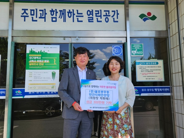 대구 동구 불로봉무동 민간사회안전망위원회(위원장 박휘태)는 7일, 다가오는 추석을 맞아 지역 내 어려운 이웃을 위해 성금 300만원을 불로봉무동행정복지센터에 기탁했다.