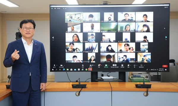 | ↑↑ 대구 수성구(구청장 김대권)가 지난 12일 지역 청년들에게 해외 취업, 글로벌 마인드 함양의 기회를 제공하기 위해 ‘2023년 일본 대기업 임원 온라인 멘토링’를 개최한 후 김대권 구청장이 온라인 참가자들과 기념 촬영하고 있다. |