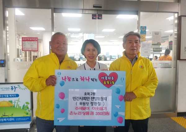 대구 동구 효목2동 민간사회안전망위원회(위원장 정환철)는 지난18일, 추석을 맞아 지역 내 어려운 이웃의 명절나기를 지원하고자 온누리상품권을 효목2동행정복지센터에 전달했다.