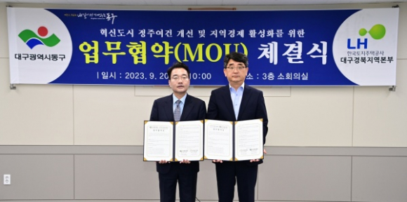 대구 동구청(구청장 윤석준)은 20일, 혁신도시 정주여건 개선 및 지역경제 활성화를 위해 LH 한국토지주택공사 대구경북지역본부와 업무협약(MOU)을 체결했다.