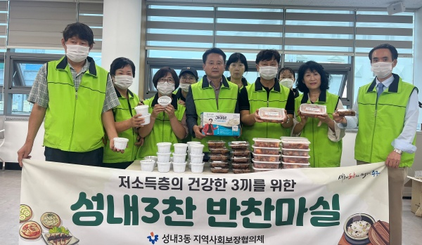 한편, ‘성내3찬 반찬마실 사업’은 성내3동 지역사회보장협의체에서 주관해, 올해 4월부터 매월 1회 계절 반찬 3가지를 준비해 식사 해결에 어려움을 겪는 어르신들을 지원하고 있으며, 이웃 간 따뜻한 정을 나누고 소외되는 이웃이 없는 모두가 행복한 마을 분위기를 만들고자 기획됐다.