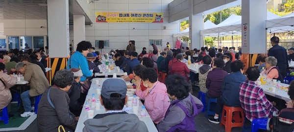 이날 경로잔치는 관내 거주하는 75세 이상 독거 어르신과 경로당 어르신 200여 명을 초청하여 짜장면, 떡, 과일 등 식사를 대접하고 축하공연 및 노래자랑, 경품추첨 순으로 진행됐다.