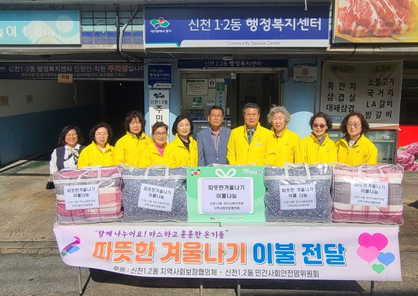 대구 동구 신천1.2동 지역사회보장협의체, 민간사회안전망(위원장 이윤형)에서 지난 18일, 동절기 한파에 취약한 관내 30가구에게 따뜻한 겨울이불 30채(120만원상당)를 전달했다.