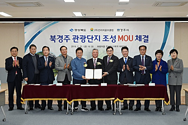 지난 22일 화랑마을 전시관에서 휴양, 스포츠, 힐링을 위한 복합관광단지인 가칭 ‘북경주 관광단지’ 조성사업에 대한 경상북도와 경주시, 사업자인 ㈜선리치골프클럽 간의 MOU를 체결했다.