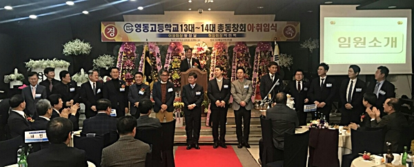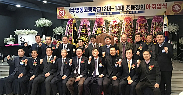 영천 영동고등학교 총동창회(회장 황창달)는 지난 22일 저녁 영천 SD웨딩컨벤션 3층에서 총동창회장 이·취임식을 가지고, 제14대 박헌백 회장을 축하하는 자리를 마련했다.
