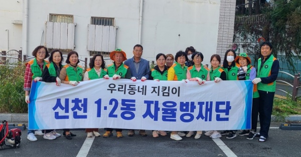 자율방재단 단원들과 동 직원 등 20여 명은 신천1.2동 송라 공영주차장 화단의 제초작업, 이면도로 환경정비, 생활 쓰레기 수거 등 환경정화활동을 펼쳤다.