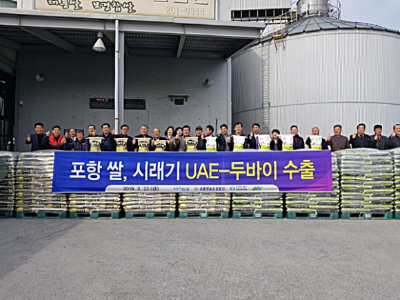 포항시는 지난 22일 북구 흥해읍 소재 대풍영농조합법인 미곡처리장에서 상차식을 갖고 포항 농산물의 첫 중동(UAE) 수출을 알렸다.