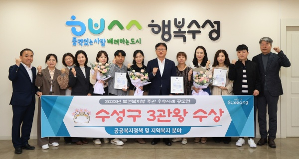 대구 수성구(구청장 김대권)는 보건복지부·한국보건복지인재원·한국사회복지행정연구회가 주최한 ‘2023 공공복지정책 및 지역복지 우수사례 공모전’에서 3관왕을 수상했다고 31일 밝혔다.