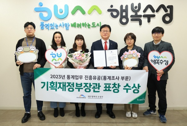 대구 수성구(구청장 김대권)는 통계청이 주관하는 2023년 통계업무 진흥 유공기관으로 선정돼 기획재정부장관 표창을 받았다고 23일 밝혔다.