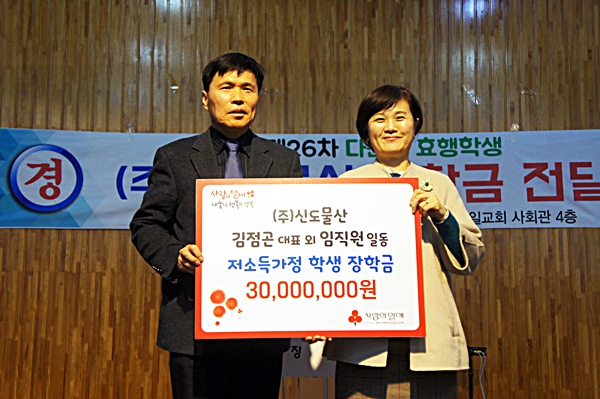 김점곤 대표는 1990년 ‘신도물산 장학회’를 설립해 올해까지 26회째 소외계층에게 장학금을 지원하고 있다. 또, 영주1호 아너소사이어티로 가입해 평소 기부문화 확산에 적극적으로 참여해왔다.