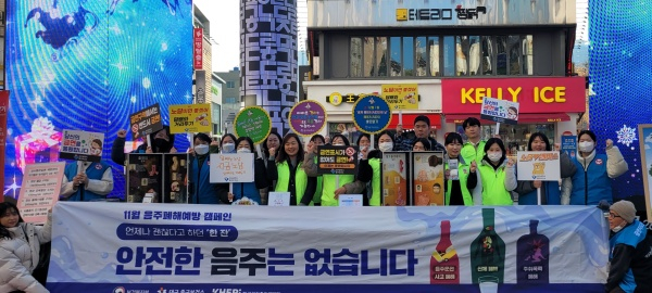 11월 음주폐해예방의 달을 맞아 실시한 이번 캠페인은 ‘안전한 음주는 없습니다’ 라는 슬로건으로 기획되어 음주폐해의 심각성을 홍보하고 건강한 음주문화에 대한 인식을 향상시키고자 ▲음주 고글 체험, ▲알쓰패치 체험, ▲절주 서약 등을 실시했다.