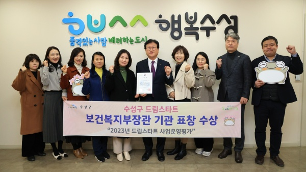대구 수성구(구청장 김대권)는 보건복지부와 아동권리보장원에서 실시한 2023년 드림스타트 사업운영 평가에서 우수기관으로 선정돼 보건복지부장관상을 수상했다고 7일 밝혔다.
