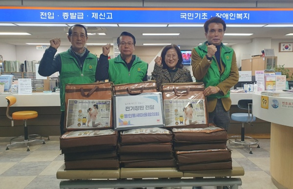 동인동새마을협의회(회장 이재호)는 지난 7일 동인동 행정복지센터(동장 박찬주)를 방문해 이웃돕기 성품(전기장판 15개, 50만원 상당)을 기탁했다.