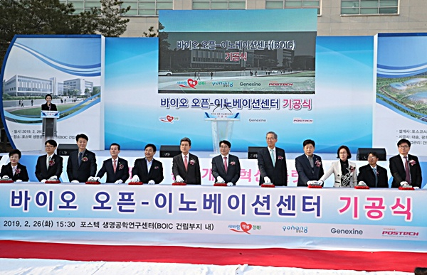 포항시는 지난 26일 경상북도, 포스텍, 제넥신과 공동으로 포스텍 생명공학연구센터 주차장 부지에서 바이오 오픈 이노베이션 센터(BOIC) 건립 기공식을 갖고, 가속기 기반 신약개발 사업을 위한 NBA 프로젝트 사업의 순조로운 출발을 알렸다.