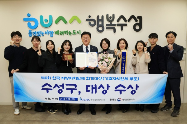 김대권 수성구청장은 “앞으로도 투명하고 효율적인 재정 운용으로 주민 정책 만족도를 높여 신뢰받는 수성구가 되겠다”고 밝혔다.