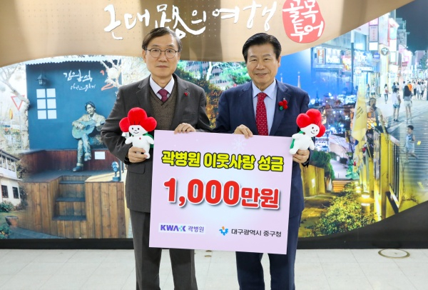 운경의료재단 곽병원(원장 곽동협)은 12일 대구 중구청(구청장 류규하)을 방문해 이웃돕기 성금 1,000만원을 기탁했다.