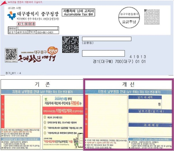 기존 고지서는 글자 크기가 작고 납부 세액, 납부 기한, 납부계좌 등 주요 내용이 한눈에 들어오지않아 불편을 겪는 납세자들이 많았다.
