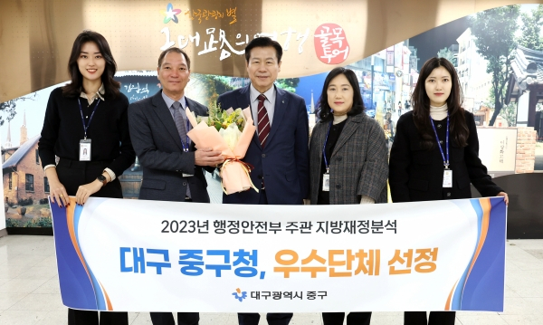 대구 중구(구청장 류규하)는 행정안전부에서 주관하는 ‘2023년 (2022회계연도) 지방자치단체 재정분석’ 결과 우수단체로 선정돼 특별교부세 5천만원을 확보했다.
