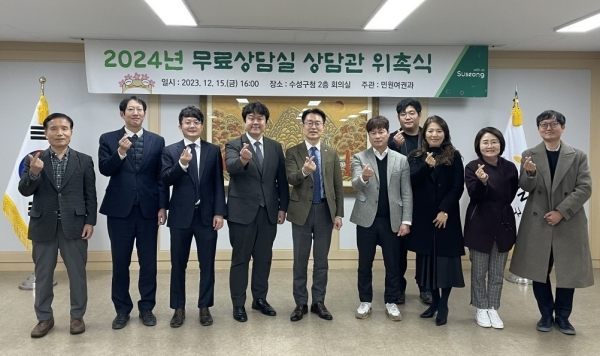 대구 수성구(구청장 김대권)는 일상생활 속 법률·세무·부동산·행정 문제로 어려움을 겪는 주민에게 전문 상담서비스를 제공하는 무료상담실 상담관 23명을 새로 위촉했다고 20일 밝혔다.