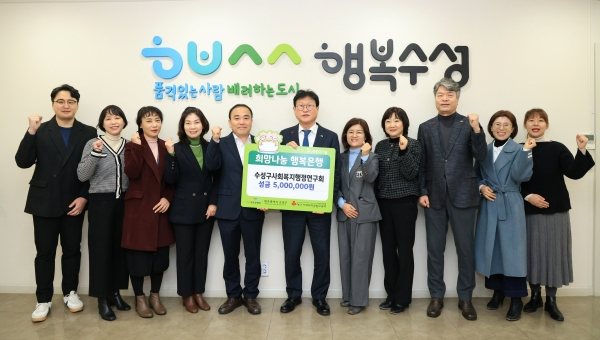 수성구사회복지행정연구회(회장 이병정)는 지난 19일 지역 어려운 이웃을 위한 성금 500만원을 대구 수성구청에 전달했다.