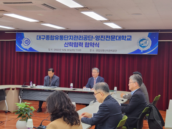 대구종합유통단지관리공단(김상출 이사장)과 영진전문대학교(최재영 총장)는 12월 26일 대구종합유통단지관리공단 회의실에서 산학협력 협약을 체결하였다.