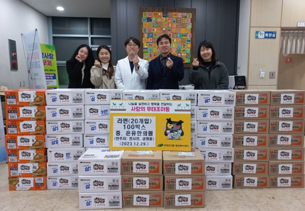 대구 북구 서변동에 위치한 온유한의원(원장 최원식)은 12월 29일(금) 「스며듦」자선 음악회(연주자 금정윤, 전시현)에서 모아진 성금으로 라면(20개입) 100박스를 구입하여 무태조야동 행정복지센터(동장 배영환)에 기탁했다.