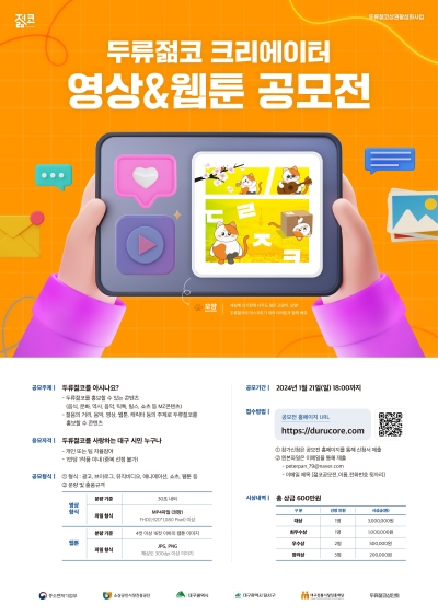 대구 달서구(구청장 이태훈)가 1월 21일까지‘두류젊코를 아시나요’라는 주제로 「두류젊코 크리에이터 영상&웹툰 공모전」을 연다.