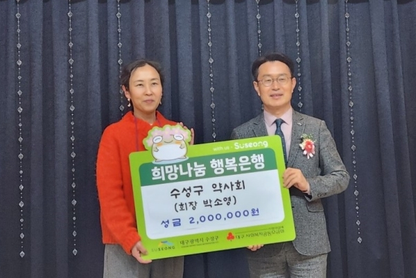수성구약사회는 지난 2020년부터 매년 200만원을 기탁하며 후원사업에 동참하고 있다. 이날 성금은 희망수성계좌에 적립 후 저소득층을 위한 사업에 쓰인다.
