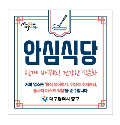 현재 안심식당 282개소를 지정·운영중인 중구는 지난해 안심식당 97개소를 추가 지정해 목표대비 194% 초과 달성하고, 위생물품, 종이수저집 등의 인센티브 제공과 현장점검을 진행하는 등 안심식당 지정·관리에서 좋은 평가를 받아 대구시 9개 구·군 중 1위를 차지했다.