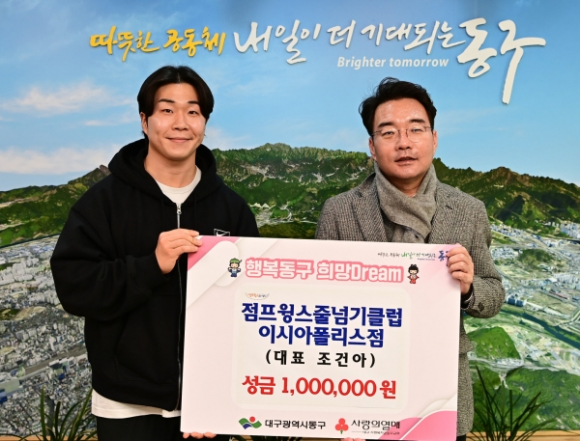 | ↑↑ 점프윙스줄넘기클럽 이시아폴리스점, 대구 동구청에 성금 100만원 기탁 |