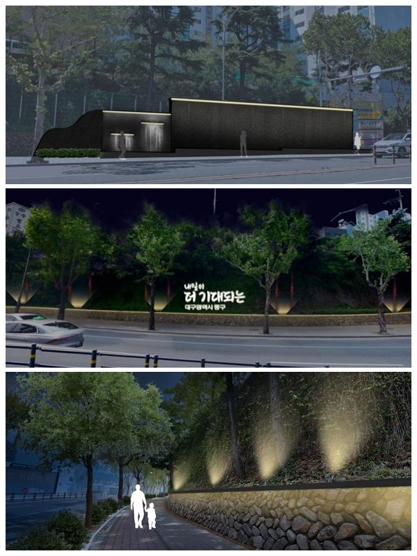 | ↑↑ 신암2구역 재개발조합이 동대구역센텀 화성파크드림 입주시기에 맞춰 맞은편 도로변에 벽천과 경관조명을 설치하고 대구 동구청에 기부채납을 한다. |