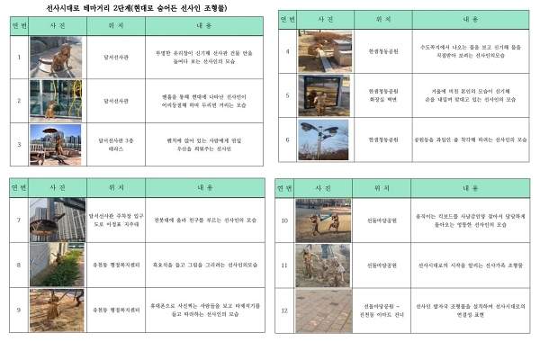 이번에 설치된 선사인 조형물은 맨홀을 통해 현대로 온 어리둥절한 선사인, 선사관 내부를 신기한 듯 들여다보는 선사인, 거울에 비친 본인의 모습이 신기한 선사인 등 선사인이 현대에 나타날 때 겪을 수 있는 다양한 해프닝을 주제로 11점이 설치됐다. 주변에 선사인 발자국도 만들어 놓아 마치 진짜로 선사인이 근처에 있는 듯한 생동감을 더했다.