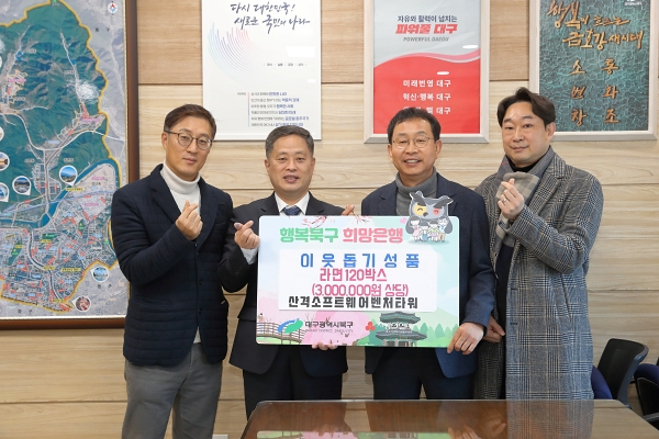 이날 전달식에는 이근수 북구 부구청장과 산격소프트웨어벤처타워 운영위원회 김해진 회장 등이 참석하여 우리 지역의 나눔문화 확산에 대한 다양한 의견을 나누었다.