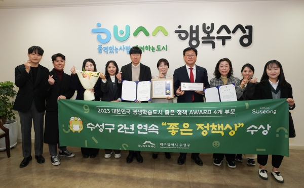 수성구는 좋은 정책상 이외에 2021년부터 전국평생학습도시협의회 대구권역 대표 도시로 활동하며 평생교육 활성화에 기여한 공로를 인정받아 단체장 표창장 등 총 4개 부문에서 상을 받은 바 있다.