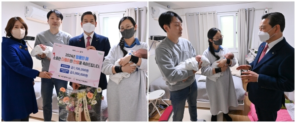 조재구 남구청장은 남구에서 더 많은 아이의 울음소리를 들을 수 있기를 기원하고 2024년 새해 다둥이 출생을 축하하기 위해 지난 2일 남구 이천동 손기범(부), 김소희(모) 가정을 직접 방문하여 다둥이 손예성(남), 손예은(여) 아기의 출생을 축하하고 산모와 아기의 건강과 행복을 기원했다.