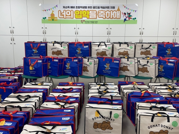 「너의 입학을 축하해 사업」은 북구청 ‘행복북구 희망은행’의 신규 후원 사업으로, 초등학교를 입학하는 저소득 가정의 아동들에게 새로운 출발에 대한 응원과 함께 부모들의 경제적 부담을 덜어주고자 학업에 필요한 입학준비물을 지원하는 사업이다.