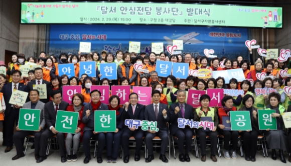 대구 달서구(구청장 이태훈)와 달서구자원봉사센터(센터장 권혁환)가 지난달 29일 구청 2층 대강당에서 봉사자 100여 명이 참석한 가운데 구민이 안심하고 즐길 수 있는 공원을 만들기 위해 「달서 안심전담 봉사단」 발대식을 개최했다.