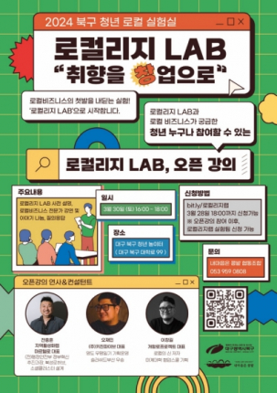 대구 북구청은 2023년 청년들로부터 뜨거운 반응을 얻은 바 있는 「로컬리지」프로그램을 확장하여 ‘로컬 비즈니스’ 실험을 위한 「로컬리지 Lab」 사업을 추진한다.