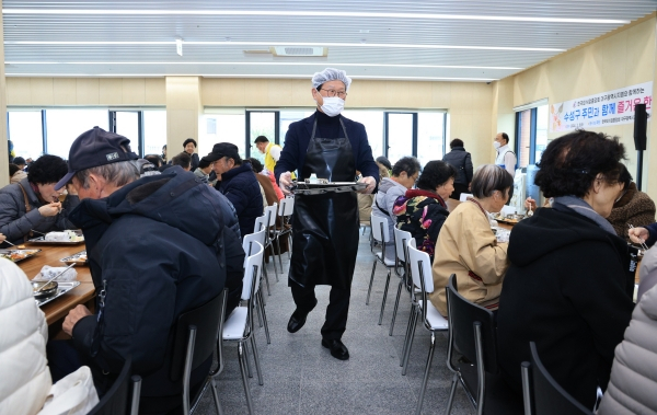 대구 수성구(구청장 김대권)는 6일 구립 함장종합사회복지관의 무료급식소 개소를 기념해 지역 어르신 200여 명에게 기념 특식을 제공했다.