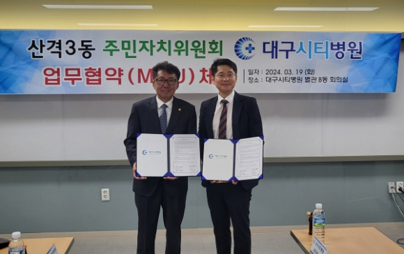 대구 북구 산격3동 주민자치위원회(위원장 박규생)는 3월 19일 대구시티병원(병원장 박인우)과 지역주민의 건강보건 향상을 위한 상호협력과 지역사회 기여를 약속하는 업무협약(MOU)을 체결하였다.