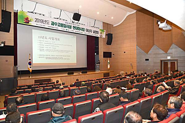 청송군(군수 윤경희)은 5일 청송문화예술회관 대공연장에서 과수 재배농가 등 300여 명이 참석한 가운데, ‘2019년도 과수고품질시설현대화사업 설명회’를 열었다.