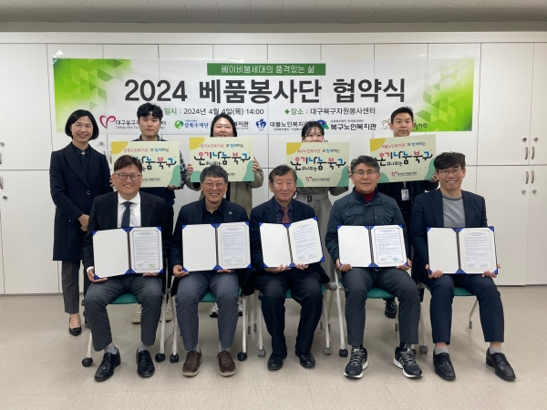 북구자원봉사센터는 4월 4일(목) 강북·대불·북구·함지 노인복지관과 베품(베이비붐 세대의 품격있는 삶)봉사단 협약을 체결하고 자원봉사자 40명을 모집하여 5월부터 10월까지 봉사활동을 진행할 예정이다.