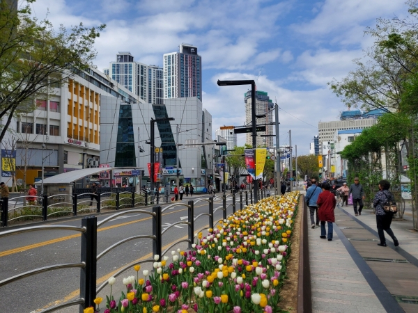 특히 대구의 랜드마크이자 많은 주민들이 오고가는 대중교통전용지구 구간에는 작년 겨울에 심은 1만여 본의 튤립이 만개해 아름다운 봄 경관을 연출하고 있다.