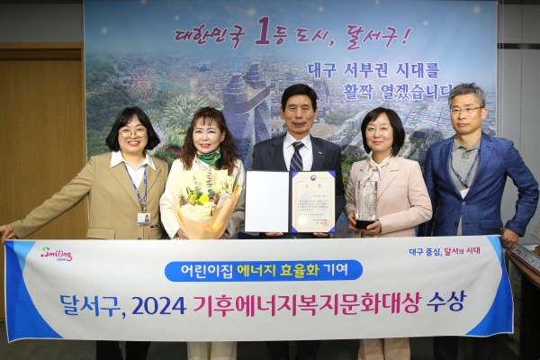 달서구는 어린이집 건물 에너지 효율화를 통한 ESG(지속 가능한 발전) 및 기후에너지복지를 실천하는 ‘공공건축물 그린리모델링 사업’으로 수상했다.