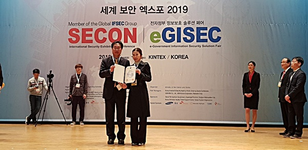 구미시(시장 장세용) 통합관제센터 이미용 관제요원이 지난 6일 행정안전부 주최 ‘SECON 2019 세계 보안 엑스포’ 개회식에서 범죄예방 및 시민 안전에 기여한 공로로 행정안전부 장관 표창을 받았다.