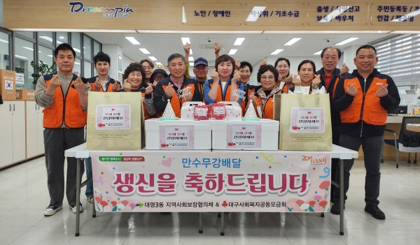 대구 남구 대명3동 지역사회보장협의체(위원장 이원팔)은 지난 4월 24일 생신을 맞이한 홀로 어르신 댁을 방문해 생신상과 선물꾸러미를 전달하는 “찾아가는 생신상” 사업을 실시했다.