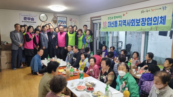 대신동 지역사회보장협의체(위원장 이호경)는 대신서문경로당에서 효 나눔 행사를 진했다. 대신동 우리마을교육나눔추진위원회(위원장 서창수)에서 직접 만든 카네이션을 어르신들에게 달아드리고 다과 및 선물 케이크를 나누며 의미있는 시간을 가졌다.