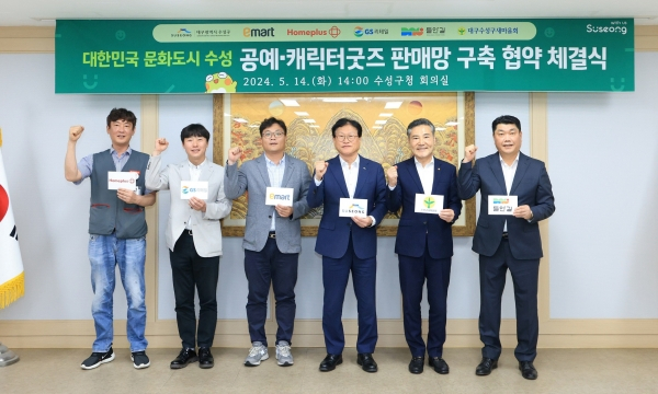 대구 수성구(구청장 김대권)는 14일 문화경제 공동체 구축 활성화를 위한 공예, ‘뚜비 캐릭터 굿즈 판매망 구축 및 활성화 협약’을 체결했다.