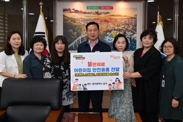 대구 남구는 화재 대처 능력이 취약한 어린이들을 위해 관내 어린이집에 ‘화재 대비 안전용품 2종’을 전달하였다.