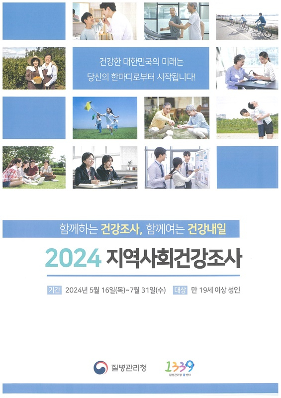 봉화군은 질병관리청, 대구카톨릭대학교와 함께 5월 16일부터 7월 31일까지 19세 이상 지역주민 성인 900여 명을 대상으로 ‘2024년 지역사회건강조사’를 실시한다.